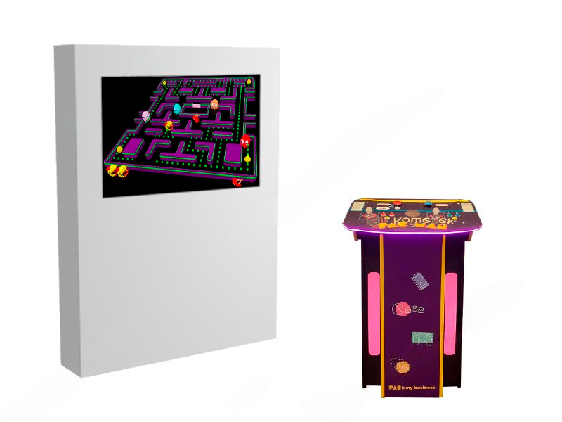 Игровой автомат Pacman это современный вариант популярной и всем известной игры. Игровой процесс рассчитан как на одного, так и двух игроков. Аппарат имеет несколько видов и размеров экранов, что позволит использовать развлечение на мероприятие различного масштаба как в помещении, так и на улице. Пакман отлично подойдет как самостоятельный аттракцион, так и дополнительная активность для Welcome зоны.