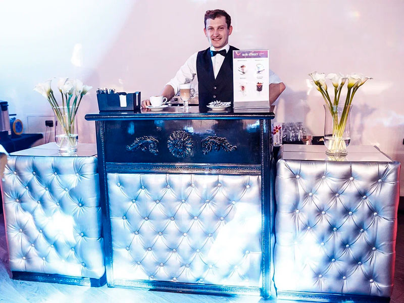 Чтобы праздничное мероприятие было ещё ярче, при его оформлении стоит уделить особое внимание барной зоне. Именно в этом месте гости праздника смогут знакомиться друг с другом, пробовать разные напитки и закуски. Представленный вариант бара включает мебель для размещения напитков, удобную стойку, комфортабельные стулья, стильную посуду, а также стильное оформление под конкретный праздник. Оформляют бар опытные и профессиональные дизайнеры, обладающие всеми необходимыми навыками. Наши дизайнеры знают, как оформлять бары так, чтобы подчёркивать высокое качество мероприятий.