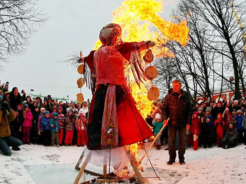 Представьте: дети прыгают в подвижной игре, взрослые соревнуются по командам, а в конце — сжигание чучела масленицы под народную музыку. Это сплачивает коллектив или семью, дарит эмоции и не требует усилий.