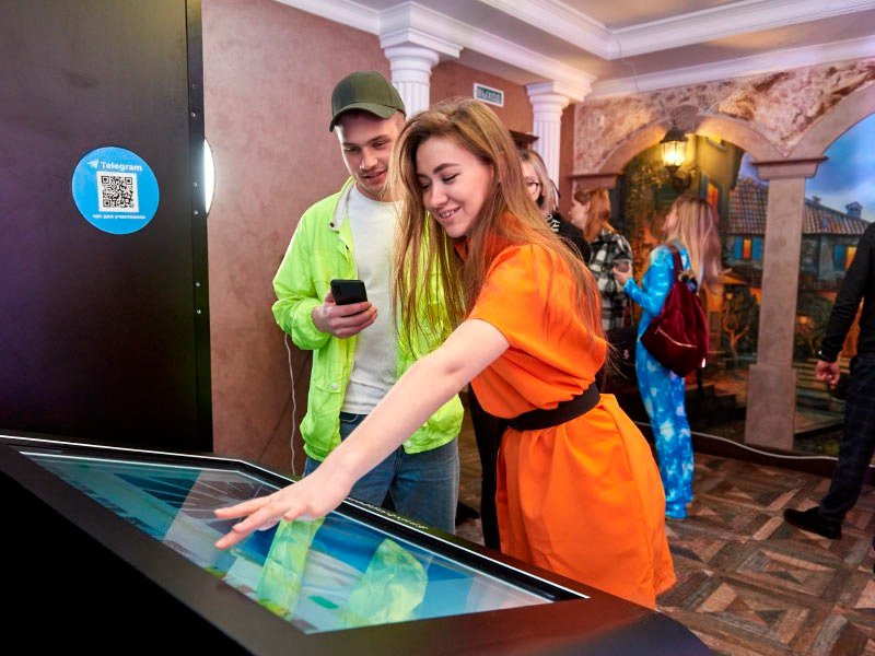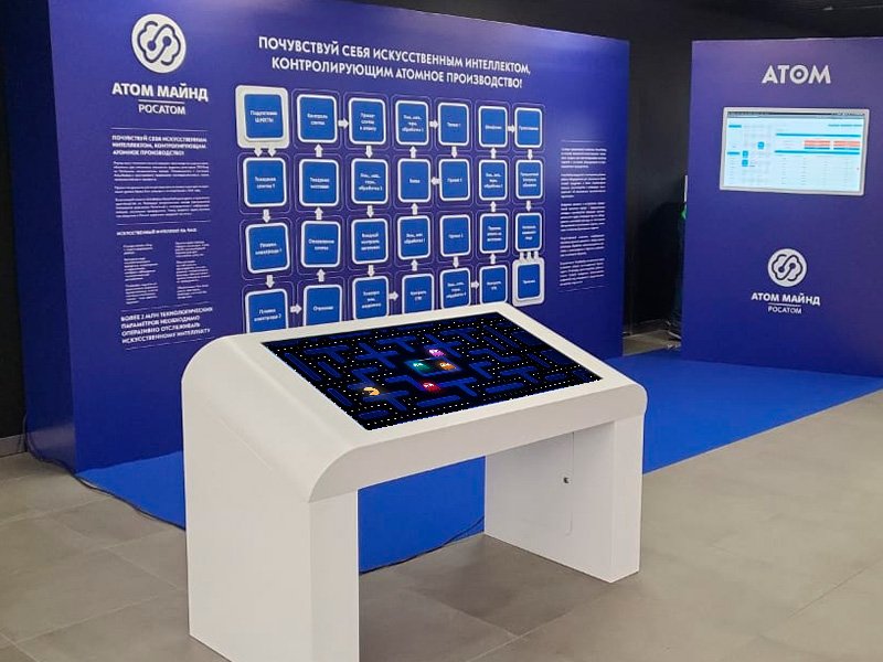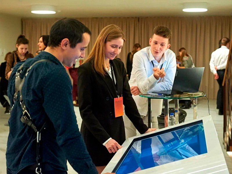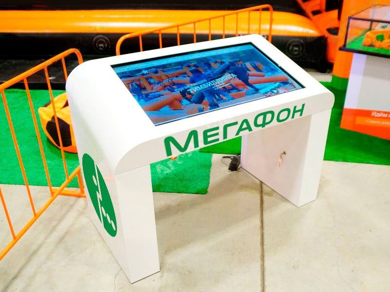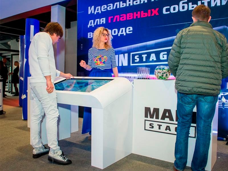 Большой интерактивный сенсорный стол это незаменимый инструмент для привлечения аудитории к вашему продукту на выставке или корпоративе. В дополнении с индивидуально разработанной программой для вашего продукта интерактивный стол станет магнитом для вашего траффика