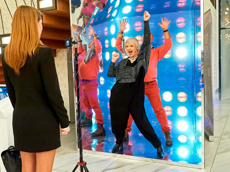 Это зрелищный и веселый интерактив, который позволяет вам сделать необычные и красочные фото с эффектом отражения! Фотозона калейдоскоп - это идеальный способ повеселиться и получить уникальные фото или видео!