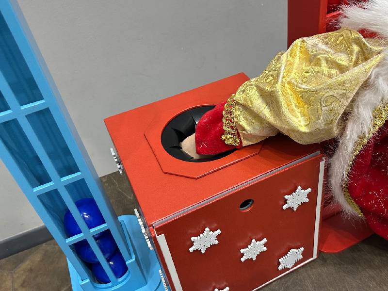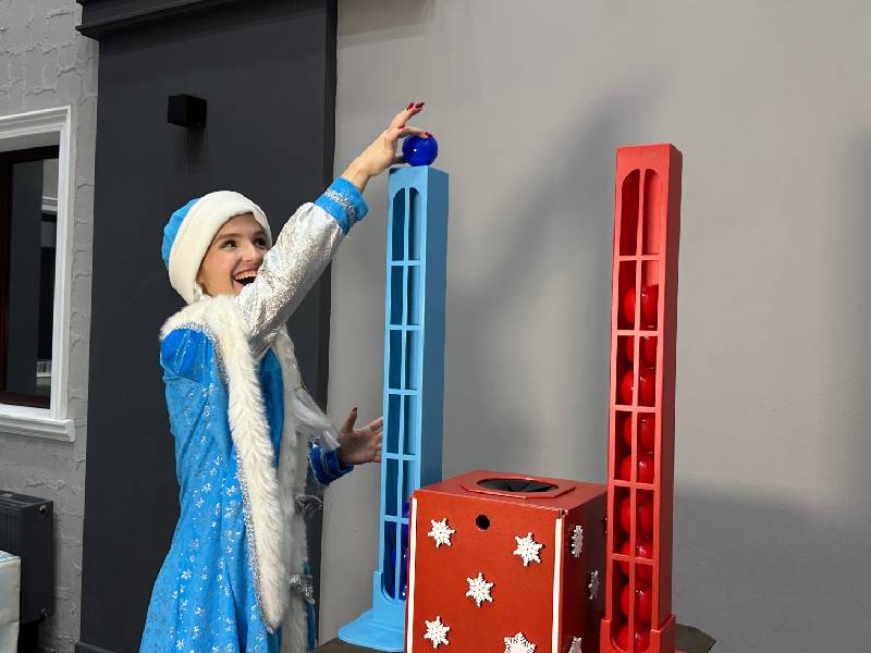 Прокачаем свою удачу в новогодние праздники. Участники выбирают один из 2-х цветов шариков – цвет своего «везения», затем по очереди вслепую вытягивают шарики из ящика, пытаясь угадать свой цвет. Угадал — кладёшь шарик в свою башню. Побеждает тот, кто первым заполнит свою башню. Идеально подходит для сбора гостей в качестве игровой станции, конкурсов и активностей с ведущим.