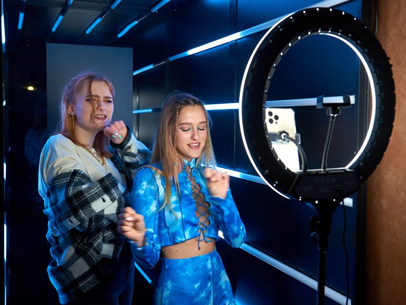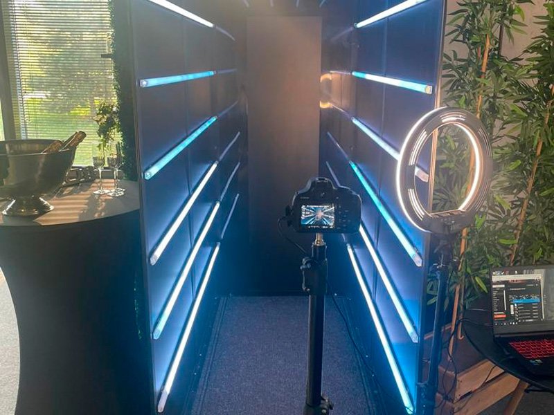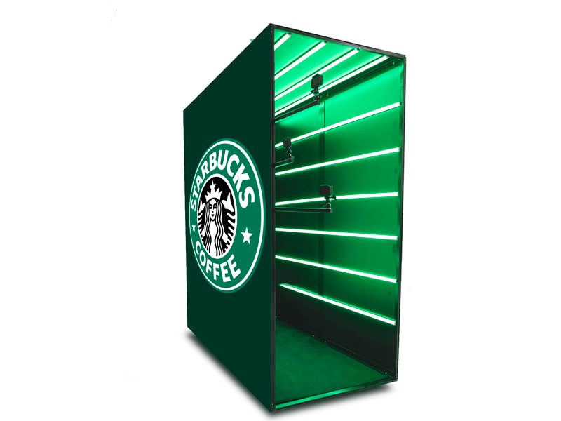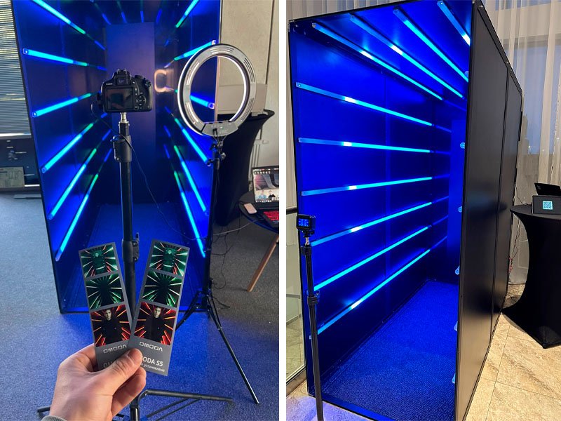 Стильная фотозона с бегущими неоновыми огнями. Каждый гость получает короткое видео с фоновой музыкой, готовое для отправки в свои соцсети. Естественно, с вашим брендированием, возможностей для которого здесь на редкость много