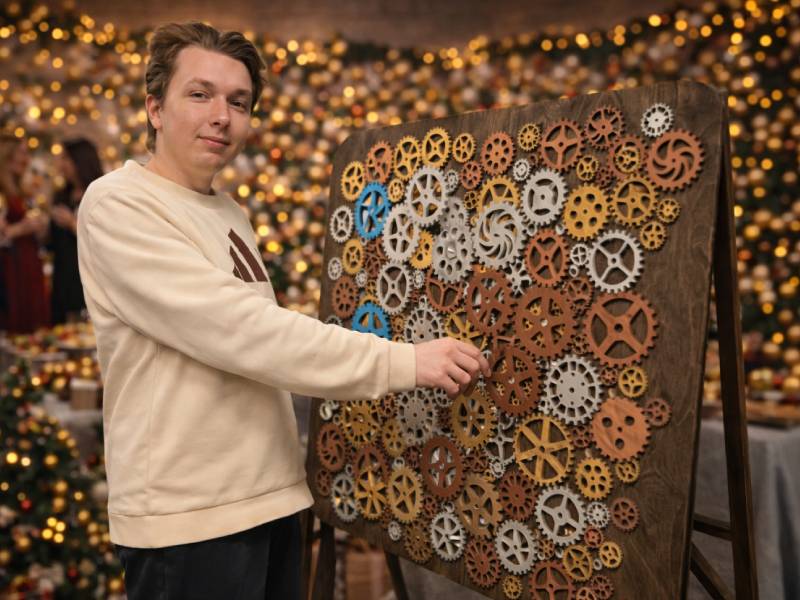 Пять минут до нового года, а часовой механизм наших новогодних часов развалился. Участникам необходимо собрать шестерёнки механизма в правильной последовательности и восстановить работу часов, чтобы пришёл новый год! Идеально подходит для сбора гостей в качестве игровой станции, конкурсов и активностей с ведущим.
