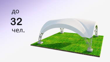 Шатер арочный «Дюна» – это каркасно-тентовая конструкция, имеющая квадратную форму в поперечнике со стороной 6 м. Таким образом, она накрывает площадь в 36 м², позволяя разместить внутри, с максимальным уровнем комфорта, до 18 человек. Подобная конструкция чаще всего используется для проведения дней рождений, банкетов, детских праздников, корпоративов, а также проведения камерных концертов, рассчитанных на небольшое количество слушателей.