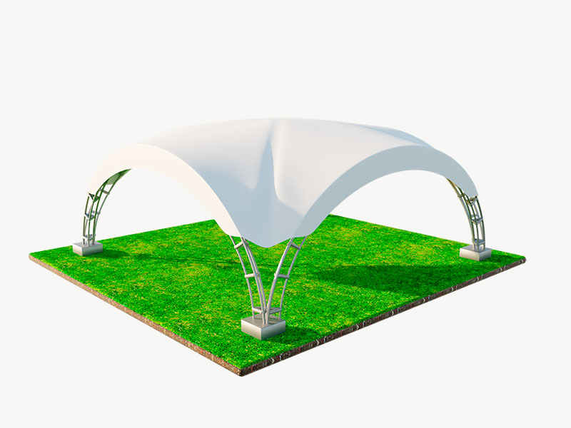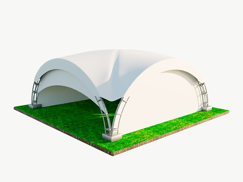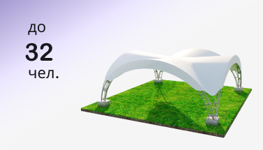 Шатер арочный «Дюна» с габаритными размерами 8x8 м занимает площадь в 64 м² и образует квадратный объем, в котором с максимальным уровнем комфорта можно разместить до 32 человек. Подобная малая архитектурная форма подходит для проведения ряда следующих мероприятий:
