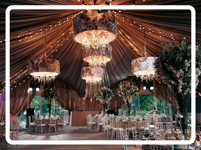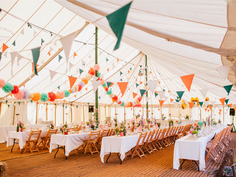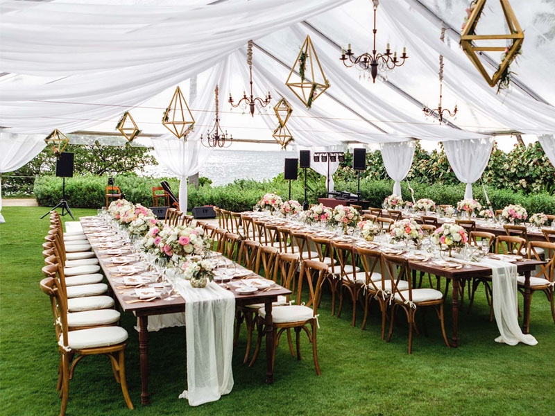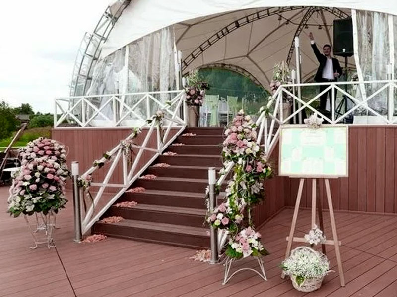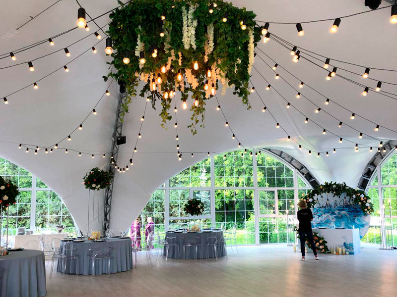 Для праздничного мероприятия на лоне природы потребуется шатёр-павильон. В нём можно проводить свадьбы или юбилеи. Классическим считается формат 10 на 10 метров. В таком укрытии поместятся от 50 до 60 человек. Преимущества конструкции: