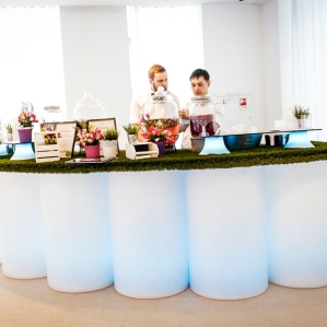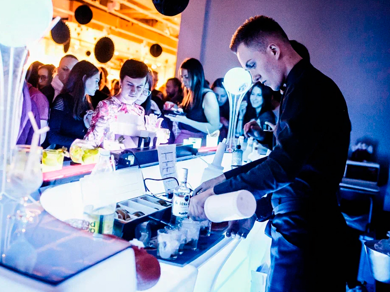 Если вы заказываете коктейль бар, мы привозим и устанавливаем профессиональную мобильную барную стойку, на которую можно нанести логотип компании или фирменный баннер. Подсветка стойки может быть адаптирована под цветовую гамму, в которой оформлено мероприятие. Дополнительно можно заказать светящиеся фуршетные столы, стильные барные зоны и лаунж-пространства для комфорта гостей. Все оборудование находится в нашей собственности, что позволяет экономить клиентам.